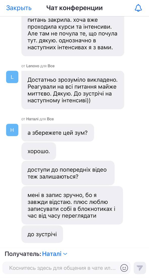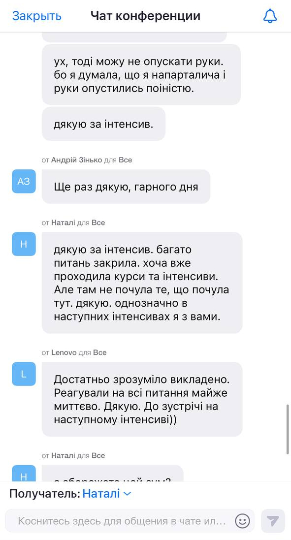 Питання та відгуки на інтенсиві
